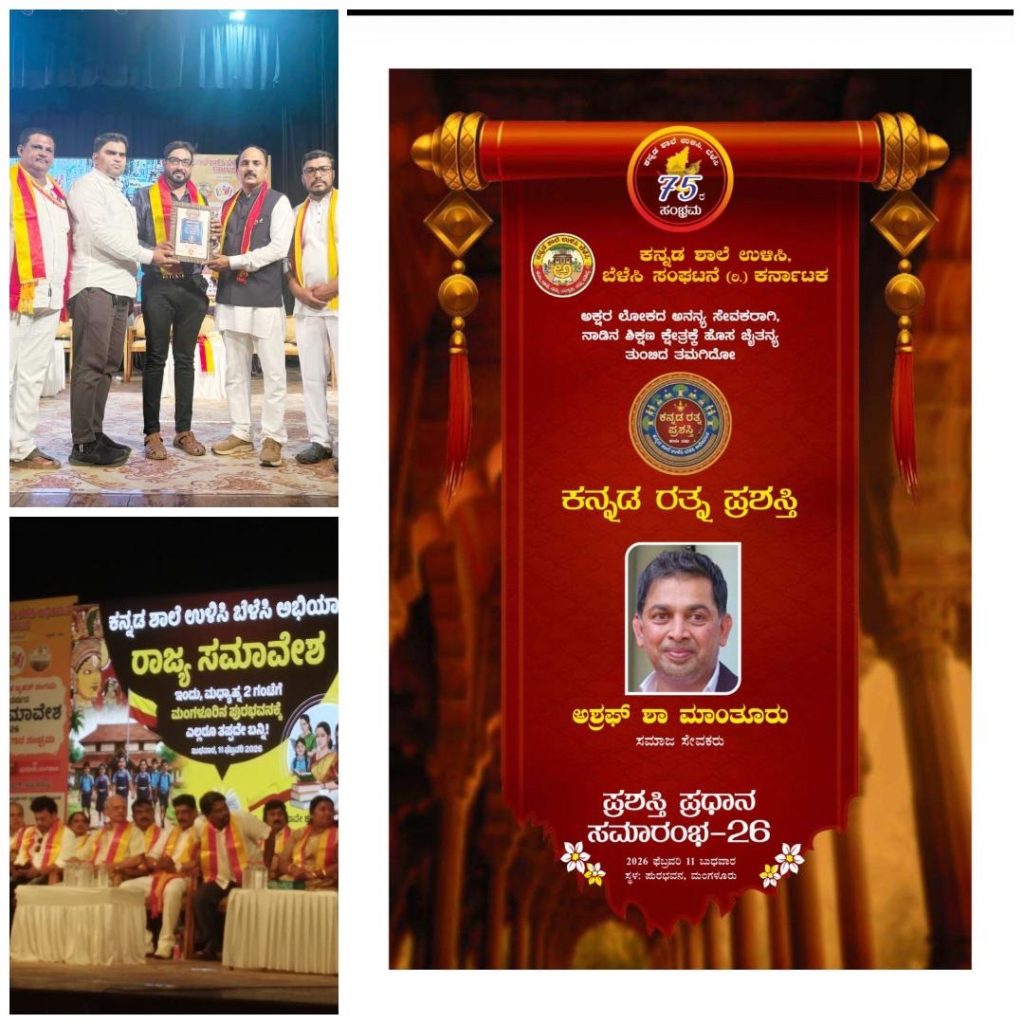 ಕರ್ನಾಟಕ, ನಮ್ಮ ಭಾಸೆ ನಮ್ಮ ಸಂಸ್ಕೃತಿ ನಮ್ಮ ಭವಿಷ್ಯ..ಕನ್ನಡ ಶಾಲೆ ಉಳಿಸಿ ಬೆಳಸಿ ಸಂಘಟನೆ (ರಿ)ಇದರ ವತಿಯಿಂದ ಕನ್ನಡ ಶಾಲೆ ಉಳಿಸಿ ಬೆಳಸಿ 75ರ ಸಂಭ್ರಮ ಪ್ರಯ್ಕುತ ಪೆಬ್ರವರಿ 11 ಬುಧವಾರ ಮಂಗಳೂರು ಪುರಭವನದಲ್ಲಿಹಮ್ಮಿಕೊಂಡ ಕಾರ್ಯಕ್ರಮದಲ್ಲಿಎಲ್ಲಾ ಕನ್ನಡ ಸರಕಾರಿ ಶಾಲೆಯ ಅರ್ಹ ಶಿಕ್ಷಕ ಶಿಕ್ಷಕಿಯರಿಗೆ ಹಾಗೂ ಅನಿವಾಸಿ ಉದ್ಯಮಿ ಅಶ್ರಫ್ ಶಾ ಮಂತೂರ್ ಕನ್ನಡ ರತ್ನ ಹಾಗೂ ಇನ್ನು ಹಲವು ಸಮಾಜ ಸೇವಕರನ್ನು ಗರುತಿಸಿ ಪ್ರಸ್ತತಿ ನೀಡಿ ಸನ್ಮಾಸಿಲಾಯಿತು ಇದರಲ್ಲಿ ಅನಿವಾಸಿ ಭಾರತೀಯರಾದ ಅಬ್ದುಲ್ ಶುಕೂರ್ ಉಳ್ಳಾಲರವರಿಗೂ […]